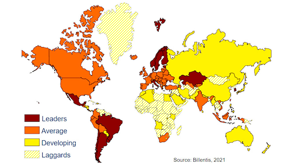 Der international renommierte Marktanalyst Bruno Koch aus der Schweiz (E-Invoicing / E-Billing: International Market Overview & Forecast 2021 – BILLENTIS) hat zum Thema E-Invoicing aktuell folgende Weltkarte erstellt: