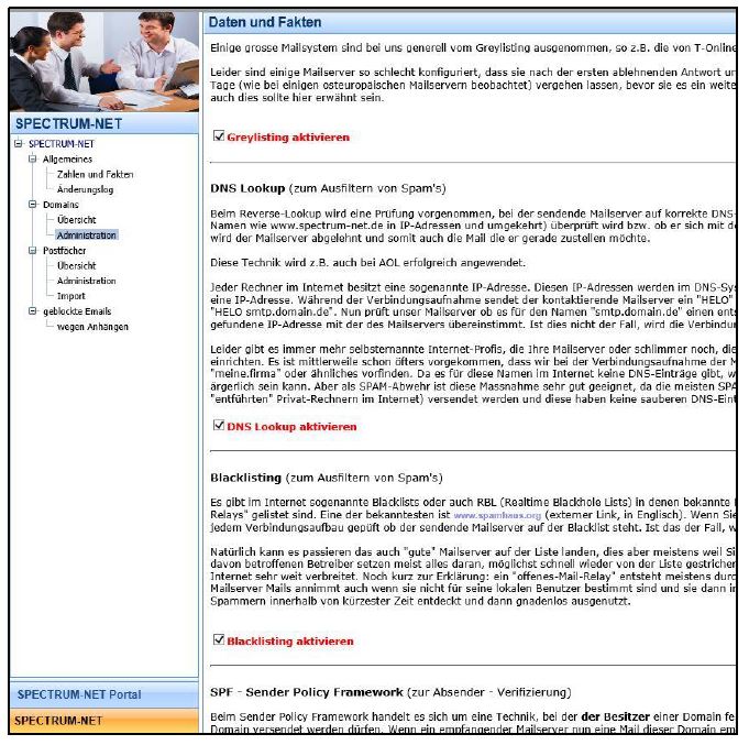 Bei SPECTRUM-NET ist das SPF-Verfahren standardmäßig eingeschaltet. Da es aber passieren kann, dass man ggfs. einige wichtige Mails dann nicht mehr zugestellt bekommt, kann der Anwender selbst diese SPF-Überprüfung über das SPECTRUM-NET-Portal auch optional wieder abschalten.
